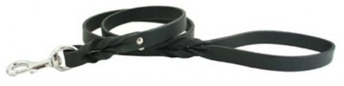 Our BRAIDED LEASH will become your favorite! Latigo leather is comfortable from the first time you use it and will soften with use while retaining its strength. Using fine quality full grain latigo leather, we hand-braid both the snap and handle ends and then bevel and hand polish the edges for added comfort. Latigo leather has strength, durability and beauty and is commonly used to produce horse bridles and reins for those reasons. With use, this leash will become even softer and more pliable. Black is assembled with a nickel swivel bolt snap and smooth capped rivets. 3/4" x 48" Long 3/4" x 72" Long