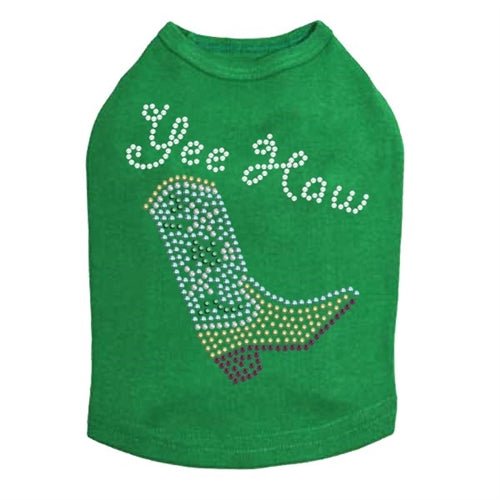 oot (Green & Turquoise with Yee Haw) rhinestone dog tank for large and small dogs.