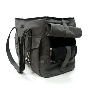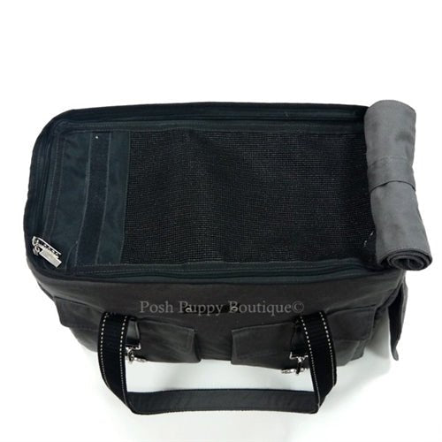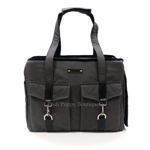 Buckle Tote V2 - NavyModern soft canvas collapsible tote with dual strap design, functional pockets outside with clasp metal hardware, inner compartmental pockets, zipper mesh window with cover over top, rolled up cover on the side and an inner security leash.