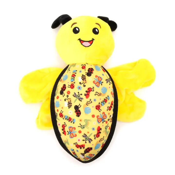 Add a flutter of fun to your pup's playtime! This adorable bug toy from The Worthy Dog flaps its wings when your dog squeezes the belly, sparking curiosity, encouraging play, and delighting your furry friend with every chomp! Designed with a durable mesh lining, heavy-duty binding, and strongly stitched seams, it's built for hours of interactive or solo fun. Soft enough for indoor play, but tough enough to handle tugging, tossing, and tail-wagging excitement. Plus, it's made with safe, non-toxic materials for worry-free fun and easy spot-cleaning for pet-parent convenience.