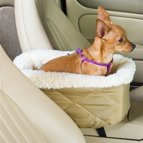 With its patented design, the Console Lookout dog car seat allows dogs to enjoy the ease and security of riding right up front alongside their best friends. The ride is firm, yet comfortable thanks to its sturdy foam form construction. A removable cover is machine washable and dryable. Available in quilted, poly cotton and vinyl fabrics, the Console Lookout is a comfortable, smart way to travel. One year Limited Warranty.