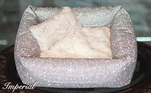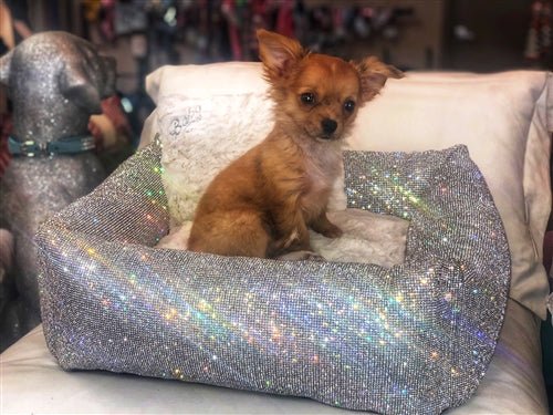 Designed for the rich and famous! This magnificent crystal bed adds a touch of class to anyone's home. Handcrafted here in the US, this one of a kind bed features a breathtaking crystal rhinestone design for that elegant and glamorous look to make any pup feel like royalty. Plush removable pillow for easy care along with a baby pillow for sweet dreams.