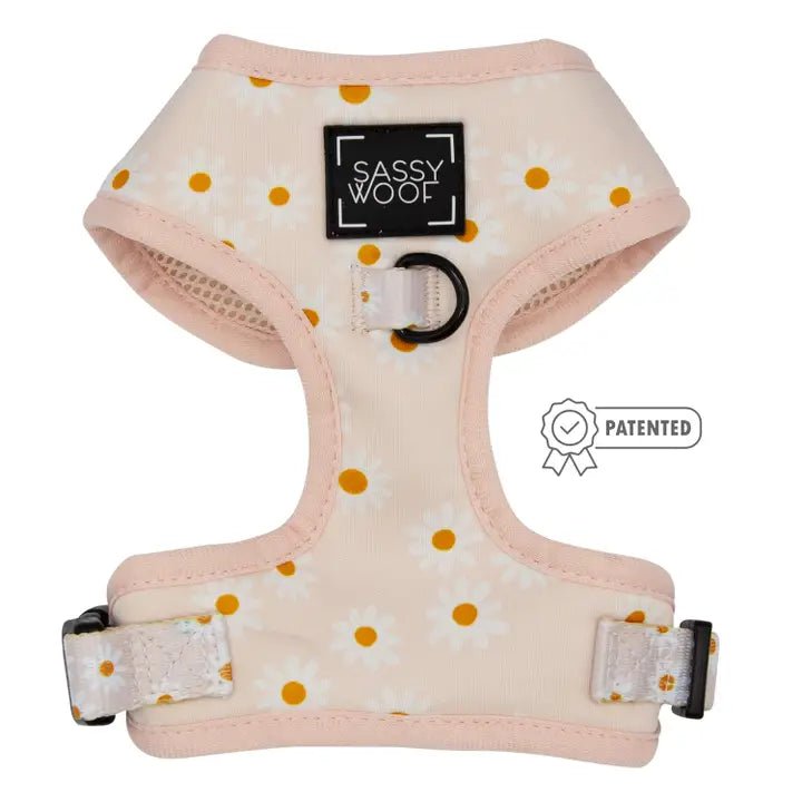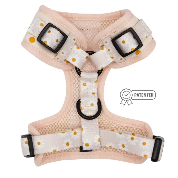 Our original patented design features: Two D-rings: One D-ring on back for leash attachment Another versatile front D-ring that can be used for "no pull" or tags Custom printed neoprene fabric with breathable mesh