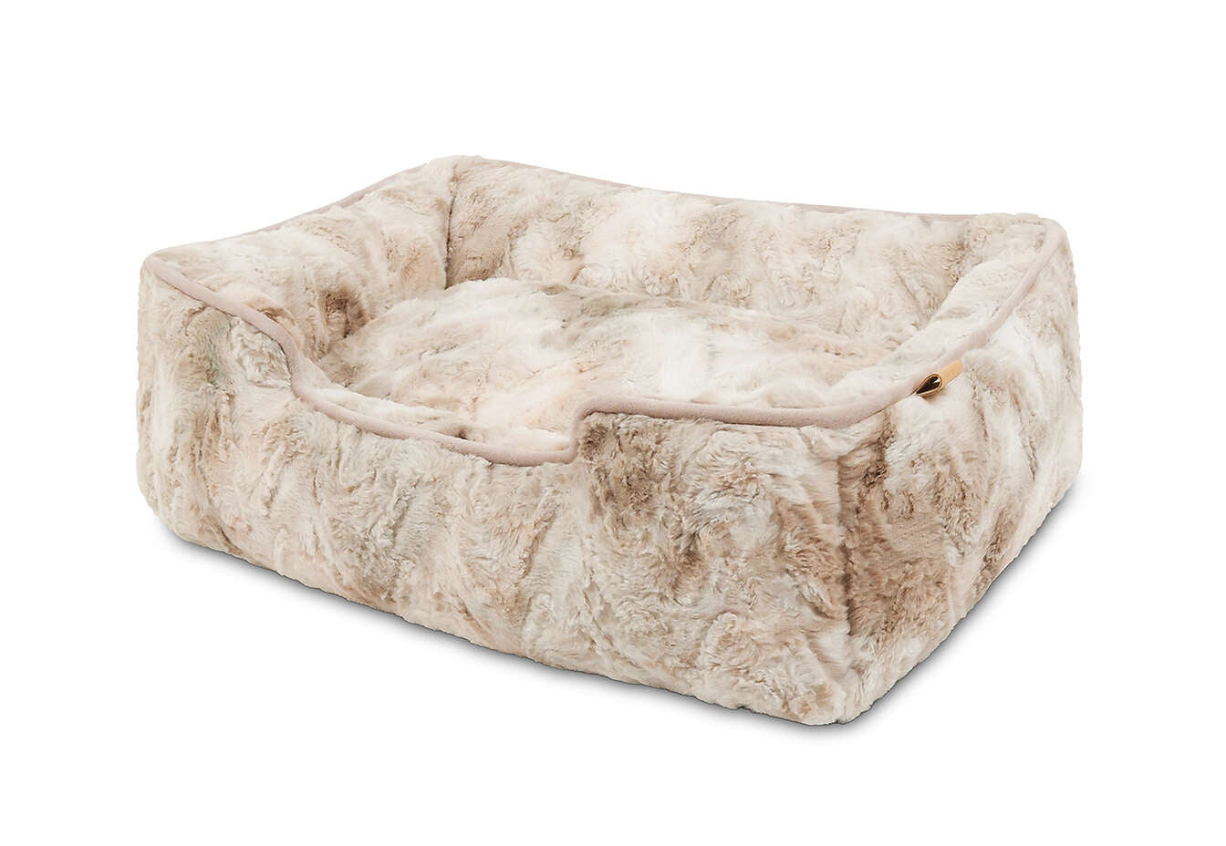 Designed for the perfect nap, this bed offers two warm colorways and elevated sides, creating a secure and comfortable headrest for your dog. Provide pups with the ultimate cozy retreat where they can melt into the soft, fuzzy fabrics of this stylish haven nap after nap.