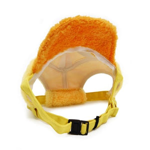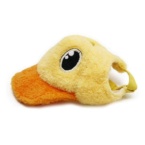 Furry duck cap detailed with cute eyes and easy to wear adjustable strap and buckle.