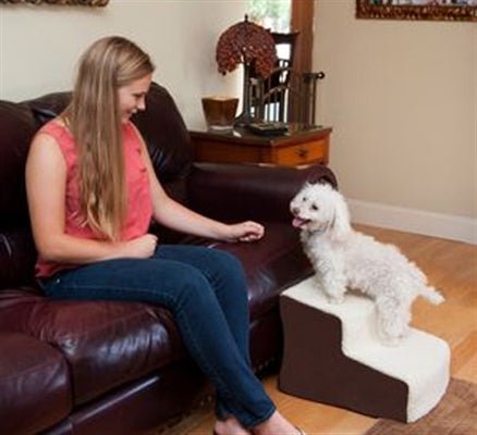 Easy Step II Deluxe Oatmeal/Chocolate The Easy Step II Deluxe Soft Step features wide, deep steps to give smaller dogs the ability to get their entire body on each platform and large dogs the ability to comfortably climb the stairs. The innovative incline of each step reduces the amount of stairs needed to climb eliminating stress on your pet. The stair comes with a removable, washable cover and easily snaps together. Features: