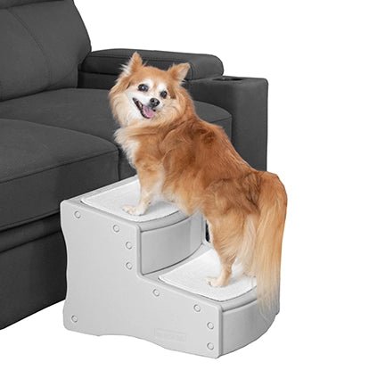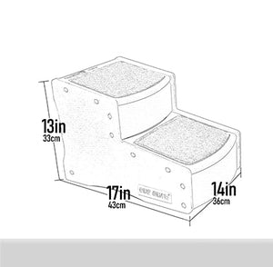 The Easy Step II Pet Stair has wide, deep steps to give smaller dogs the ability to get their entire body on each platform and large dogs the ability to comfortably climb the stairs. The innovative incline of each step reduces the amount of stairs needed to climb eliminating stress on your pet. The carpet tread removes easily and is machine washable. The stair easily snaps together (no tools required).