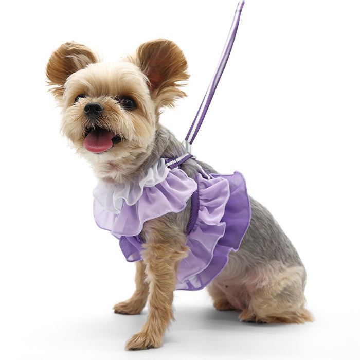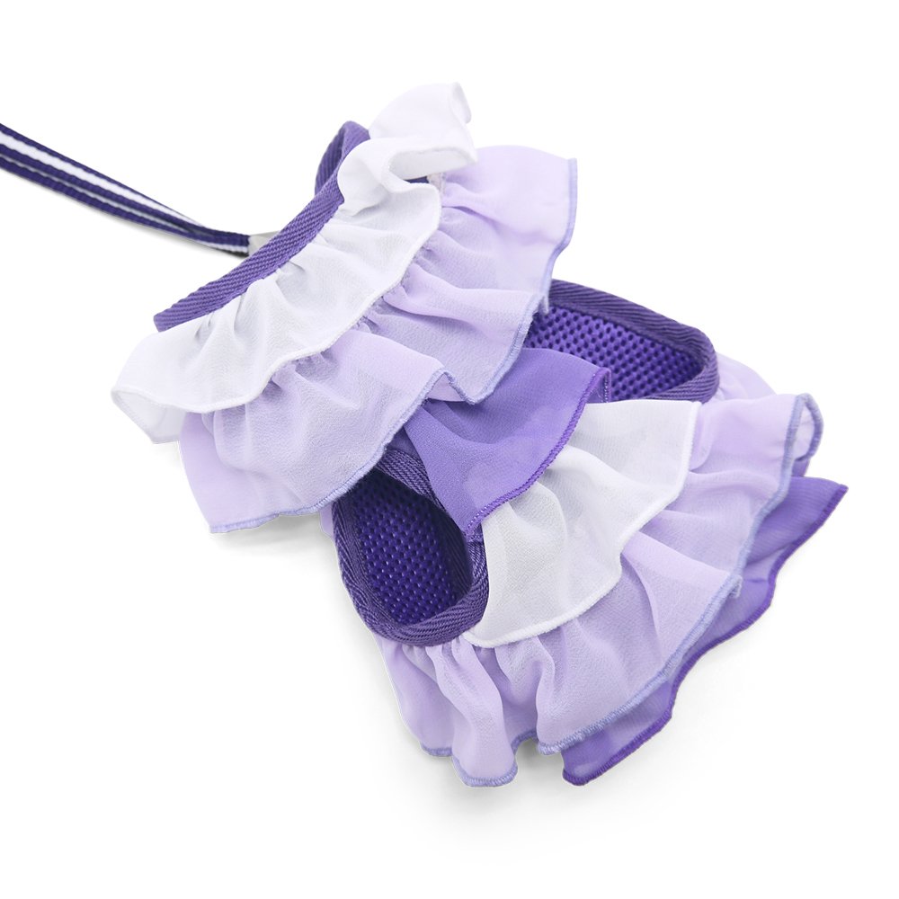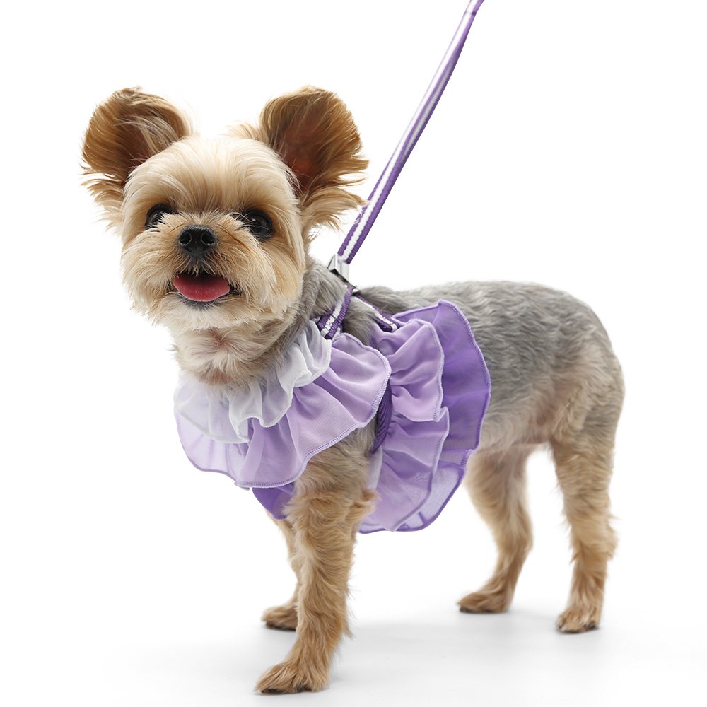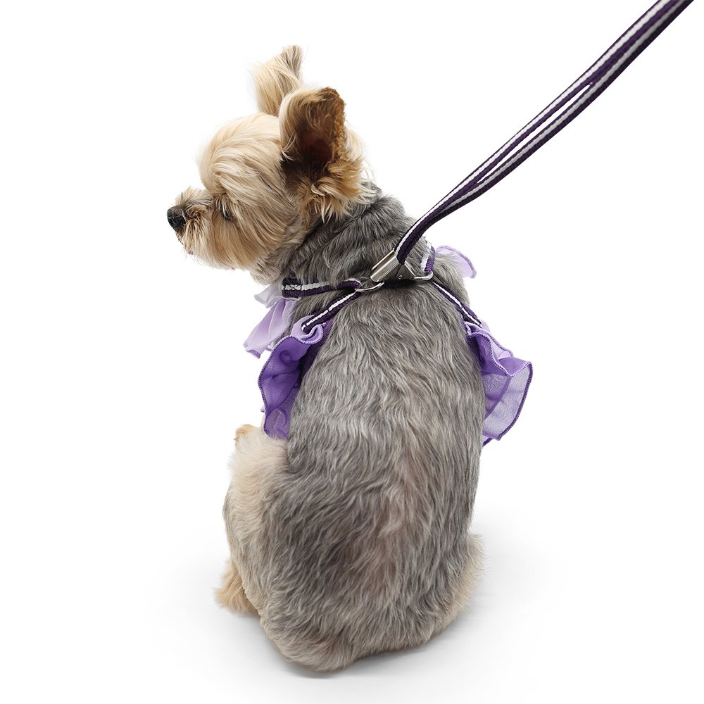 Ruffles and Purple! The best all-in-one soft harness. Easy, safe, and comfortable to wear. It features a buckle-less step-in design secured by a simple slide-down clip. A matching lead is included with every EasyGO!