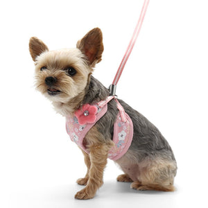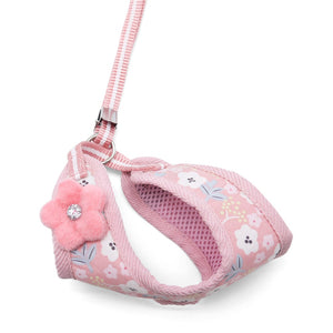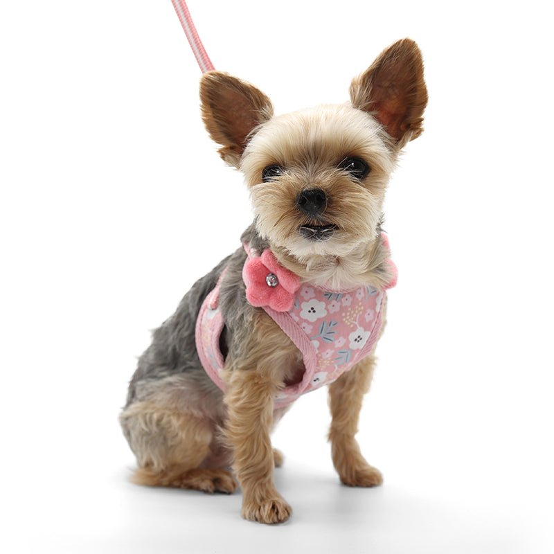 Flower print EasyGO with decorative flowers on each side. Perfect for a walk in the garden. The best all-in-one soft harness. Easy, safe, and comfortable to wear. It features a buckle-less step-in design secured by a simple slide-down clip. A matching lead is included with every EasyGO!