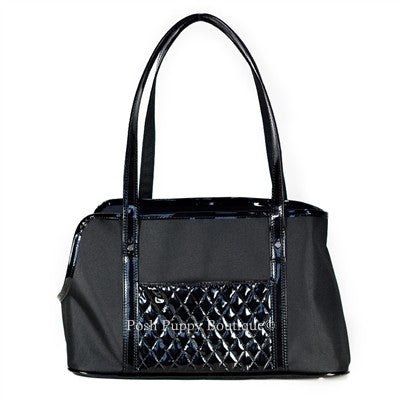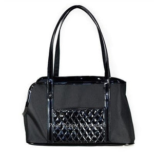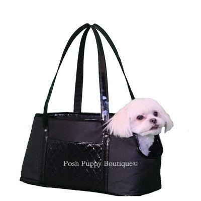 Tote your dog in style with our brand new Ella Tote! The Ella Tote is perfect for easy breezy travels around town with your dog! The Ella is a stylish, lightweight tote style dog bag that will accommodate pets up to 12 lbs. Made of durable canvas and trimmed with quilted and shiny faux leather, this fashionable tote will have heads turning. Ella tote features removable and washable faux fur bedding, adjustable interior safety strap, and 2 exterior quilted pockets for storage.