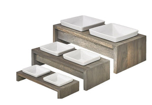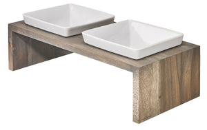 I bought this double diner in the x-small size for my new toy poodle puppy. She's too small to use it now, but once she grows it will be perfect. It's so much easier on small breeds not to have to bend too far over to eat because of pressure on their esophogus. Beautiful finish on the wood and the bowls are the perfect size. Love this set!