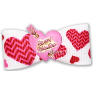 Adorable chevron striped hearts with a conversation heart center. Approx 1.75" wide; stiffened for extended wear; 7/8" ribbon.