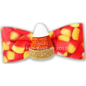 Fun printed ribbon with a bag full of candy corn and glittered candy corn center. Stiffened for extended wear; Approximately 1.75” wide; ribbon 7/8”