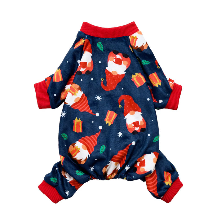Cozy up in this velvet pajama made from 100% polyester, providing ultimate comfort for your furry friend. The Christmas design features a mix of festive prints and red/green stripes, perfect for adding some holiday cheer to your pet's winter wardrobe. Stay warm while enjoying all the holiday festivities with this stylish and playful pajama, suitable for any Christmas event from parties to walks to family photoshoots.