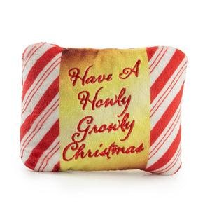 Introducing Grrradelli Puppermint Bark! Your dog will love playing with this cute, fun toy that crackles and squeaks! Made of soft plush material. Measures 4" x 5".