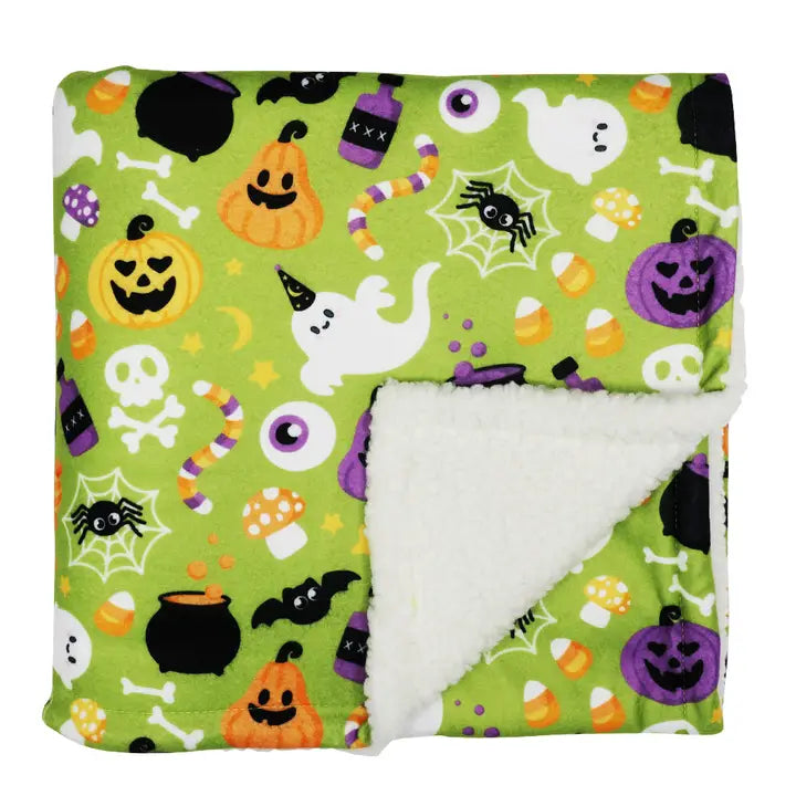 This sherpa blanket is pawfect fur snuggling on top of, or under! Made with a warm sherpa underside and a patterned microfiber top.