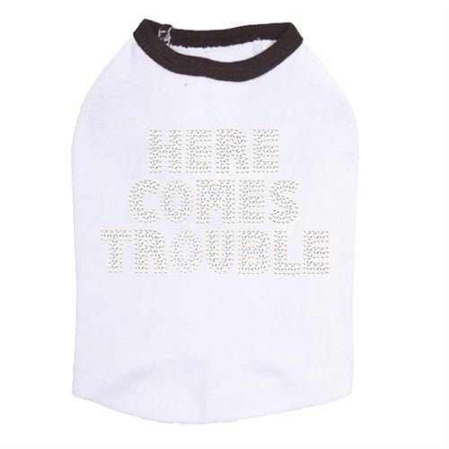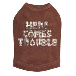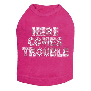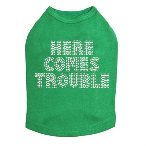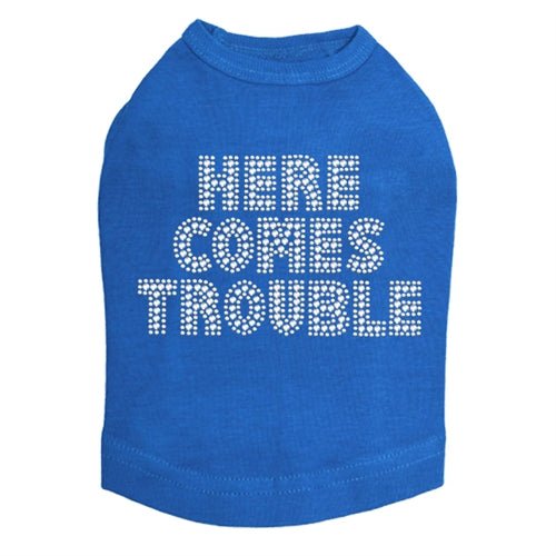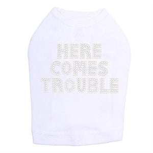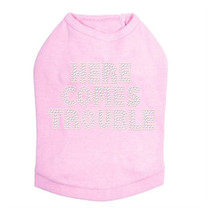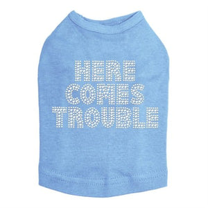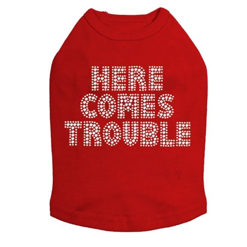 - Here Comes Trouble Rhinestone Tank- Many Colors
