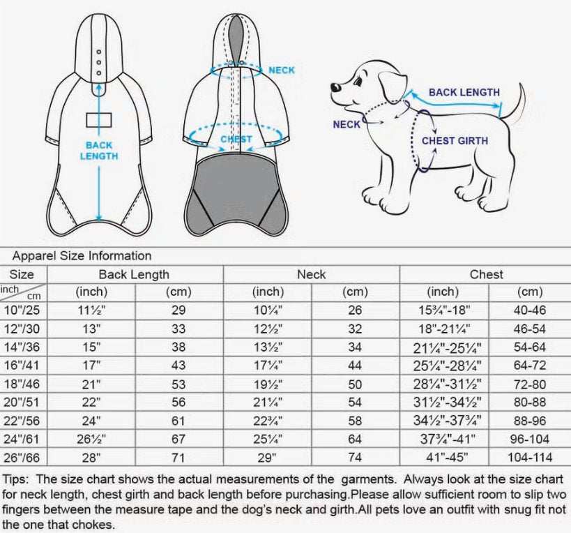 Made of 100% polyester with soft base layer lining, keeps dog warm during the cold weather, snow or raining days