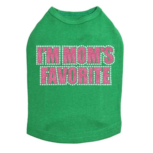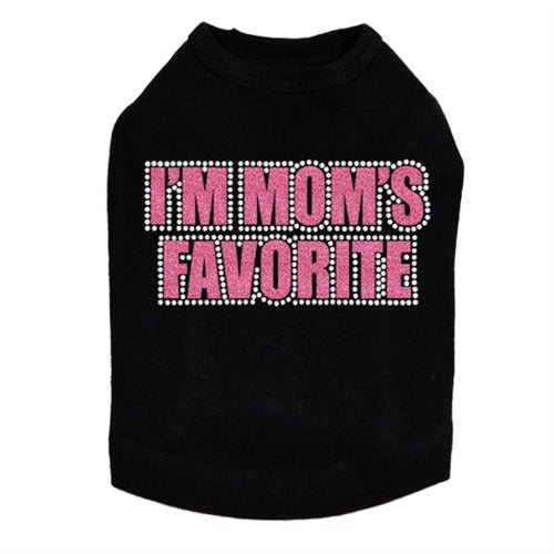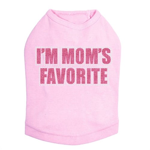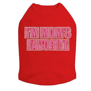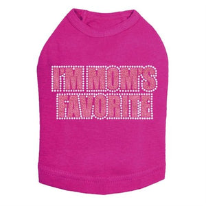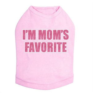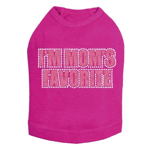 I'm Mom's Favorite (Pink) rhinestone dog tank for large and small dogs.