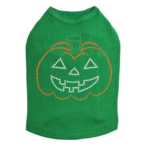 5.5" X 5" design with orange, clear, and green rhinestones , rhinestuds.