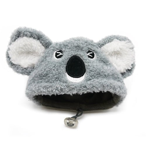 Furry Koala hat with stand-up ears and pull string tie design