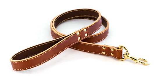 The perfect compliment to our Lake Country Sunburst Collars and Lake Country Stitched Collars. Full grain bridle leather with antiqued brass swivel snaps and rivets. Stitched with natural thread. Unfinished edges are smoothed for comfort. This leash will become even softer with use.
