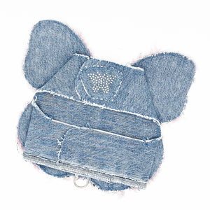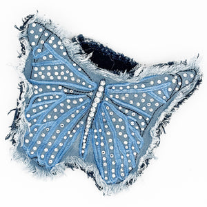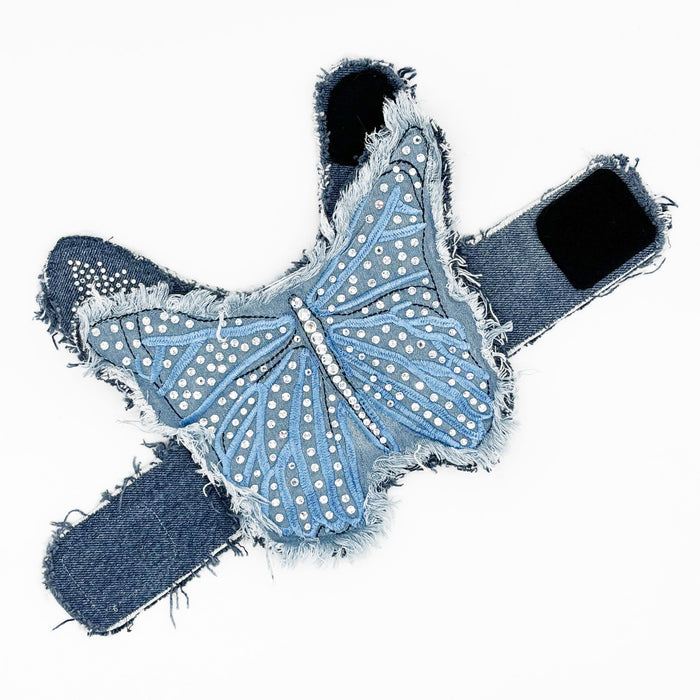 Soft, sweet, and full of sparkle—our Butterfly Denim Dog Harness Vest is a magical addition to any pet’s wardrobe. Crafted from repurposed blue denim with butterfly in pink and purple hues, this vest features a frayed butterfly patch adorned with shimmering rhinestones. As your dog or cat walks, the wings gently flutter, creating an enchanting effect that’s sure to turn heads.