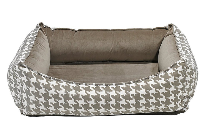 Open front design makes it easy for older dogs to step into this new design. The oval ring creates the feeling of security pets love and dogs will love resting their heads on the supersoft bolster. Zippered cover for washing; tufted bottom ensures fibre doesn't clump or shift. Reversible design with attractive contrast piping.