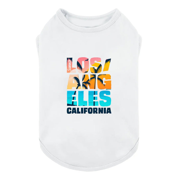 Make your furry friend the trendiest pup on the block with our Los Angeles Dog Shirt in Black. This cool tank top captures the essence of California style, adding a touch of West Coast vibes to your pet's wardrobe. Designed for both comfort and fashion, it's the perfect choice for beach days or city strolls. Whether your dog is soaking up the sun at home or exploring the great outdoors, this must-have shirt will keep them looking stylish and feeling fabulous. With its playful design and sunny attitude, it's the ultimate summer clothing for small dogs and cats.