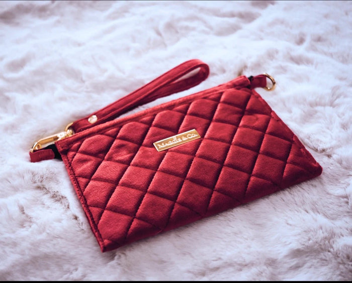 Designed for human use this is the perfect little wristlet yo carry all your essentials. Where elegance meets comfort. Our velvet collection is luxurious yet affordable. Bring your sophistication game to the next level. Finished with gold hardware.