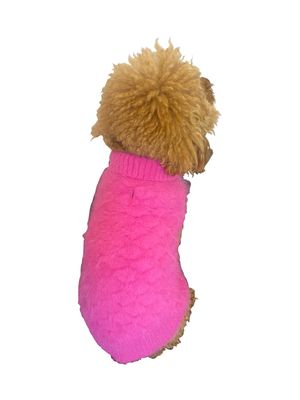 A 3-dimensional flower corsage flower cluster adorns this blush pink cotton turtleneck for a clean and simple summer sweater. Perfect for cool summer evenings now and into fall. Machine wash cold, lay flat to dry for best result.