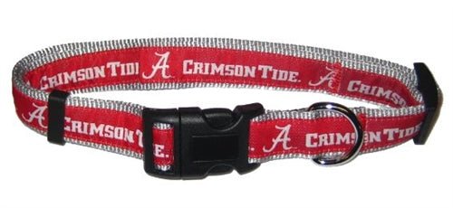 Show support of your favorite team with this adjustable nylon officially licensed Alabama dog collar! This collar closes with a hard plastic locking clasp for easy access on and off.