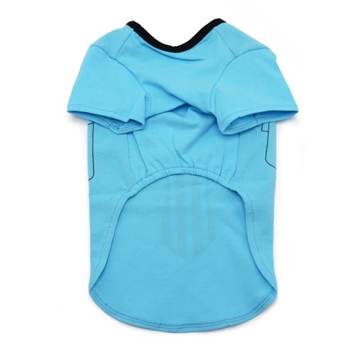 Fused dress shirt on t-shirt design with pocket and necktie graphics. Leash hole.