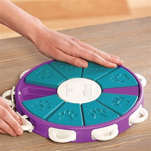 With 9 compartments and 9 locking switches, this challenging dog treat puzzle toy keeps smart dogs busy, redirects destructive behaviors and teaches problem solving.