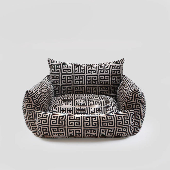 The Obsidian Dog Sofa by Hello Doggie is silky soft to the touch you'll want to lay in them too! These handmade beds are made from the highest quality of fabric and stuffed to perfection with 100% poly-fiber fill for longer-lasting fullness and durability. The Obsidian Dog Sofa features a removable pillow for easy care and a non-slip floor to hold the bed in place will make your pup feel like the Greek god or goddess that they truly are. Wash on a gentle cycle, with no bleach or softener. Air dry or tumble on low.