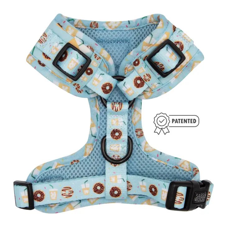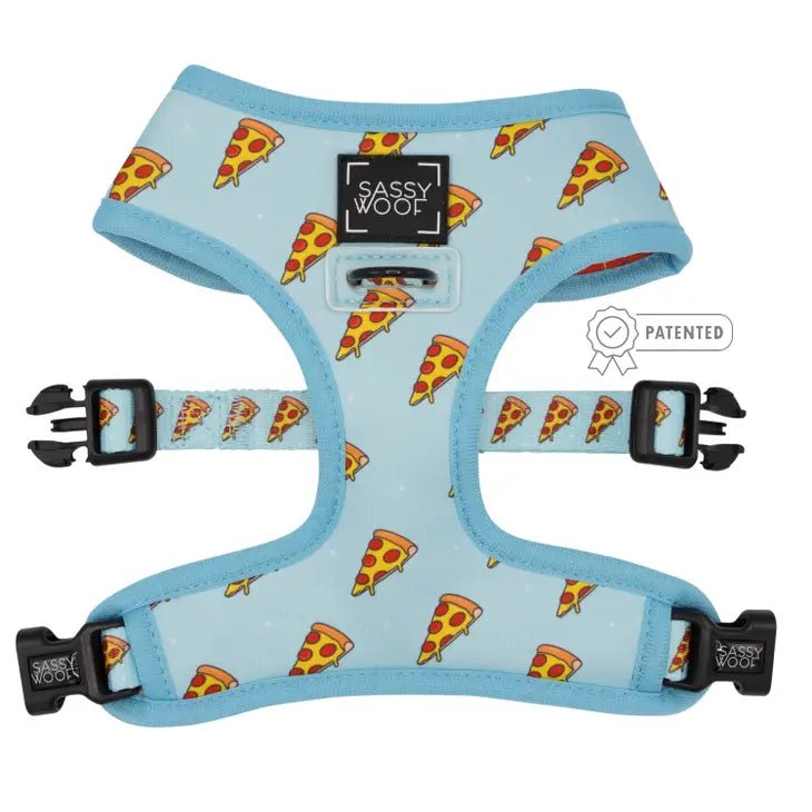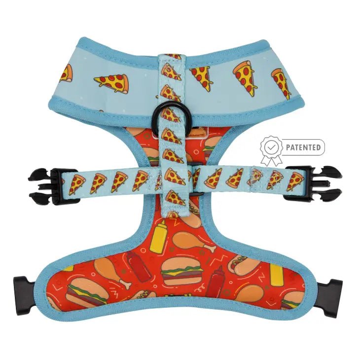 Our original patented design features: Two D-rings: One D-ring on back for leash attachment Another versatile front D-ring that can be used for "no pull" or tags Custom printed neoprene fabric with breathable mesh