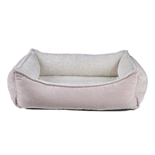 This innovative design features a "scooped" front which creates a modern sleek look while creating easy access for smaller or older arthritic dogs. The memory foam cushion insert is infused with Cool Gel Micro Beads which regulate body temperature. Elegant two-tone fabric combination and European style "scalloped" trim. Removable tufted center cushion and zippered outer cover. Generous sizing maximizes sleeping area; great design for larger dogs.