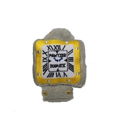 Pawtier Watch Plush Toy - Now your dog will always know what time it is. Your customers will love getting one of these plush, cute, and fun squeaker toys for their dog. They will love how stylish and unique it is. Treat a special doggie today!