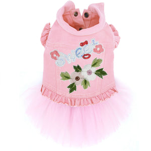 Pink Lace Flowers Pink Denim Jacket with Tutu