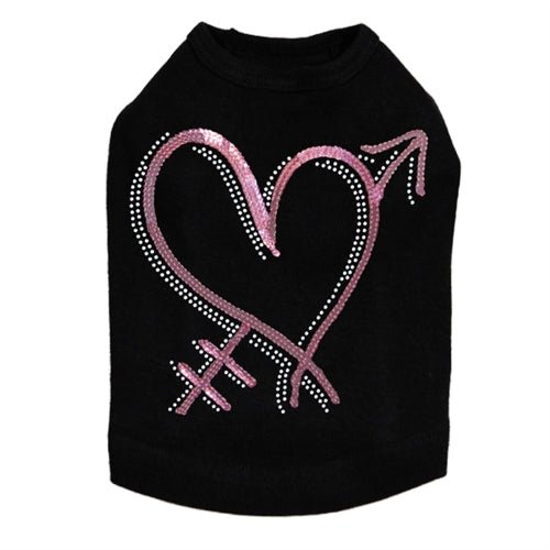 Pink Sequin Heart with Arrow Rhinestone dog tank for large and small dogs.