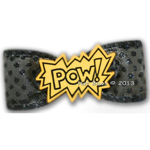 Super Hero POWer!!! POW! Black sheer ribbon (5/8") power bursts of black glitter with a bright graphic POW! center.