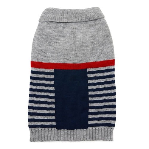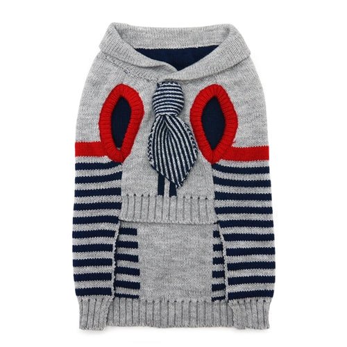 Preppy Necktie Sweater in BlueContrasting stripe sweater with high collar and cute matching necktie.