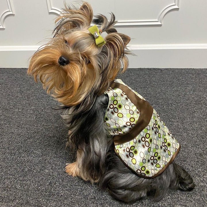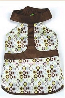 Fresh, hip and trendy, this slinky top features retro, geometric prints in a classy green and brown combination. Halter style with a brown accented trim, key-hole neck with button closure. This ultra-modern top is completely lined in lightweight silky pink fabric. This Pucci-esque mod top is the hottest look this season.