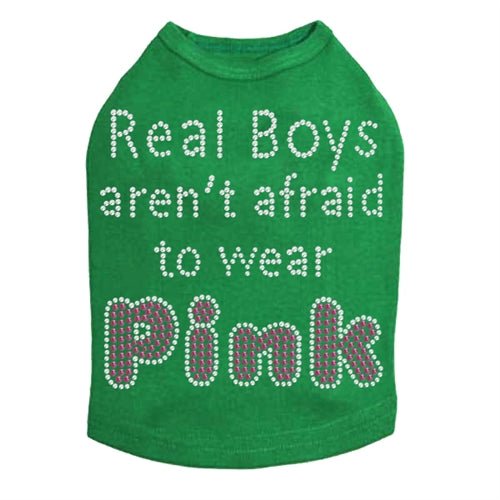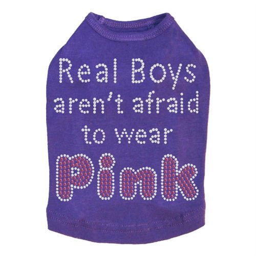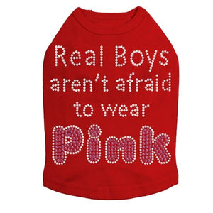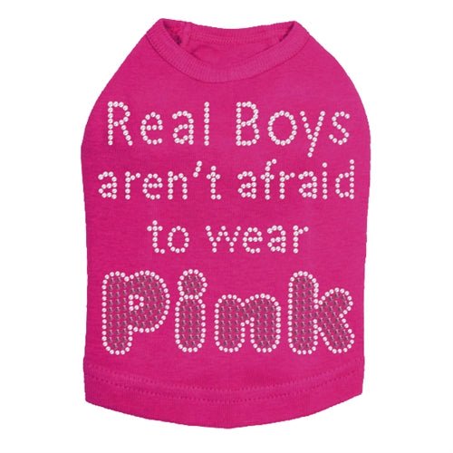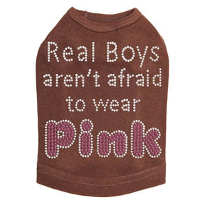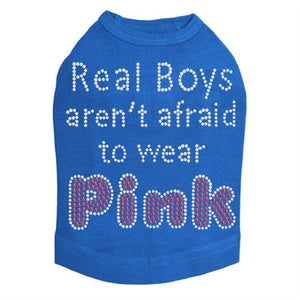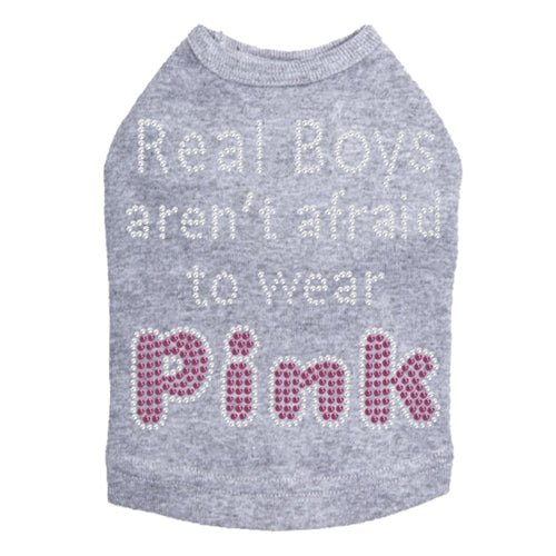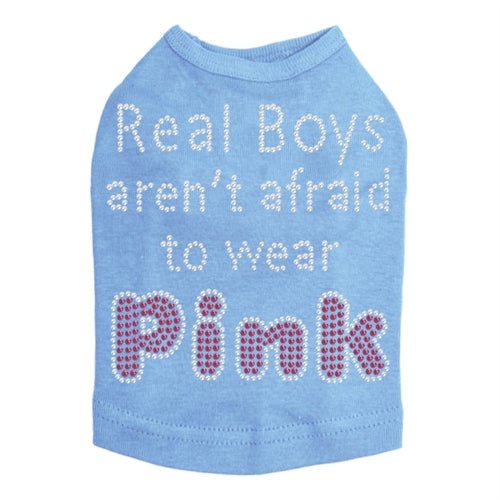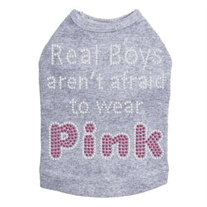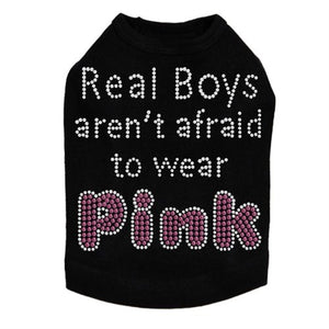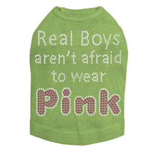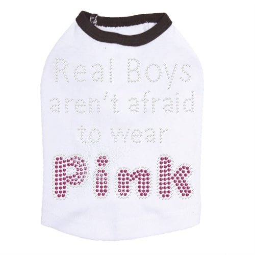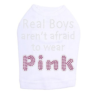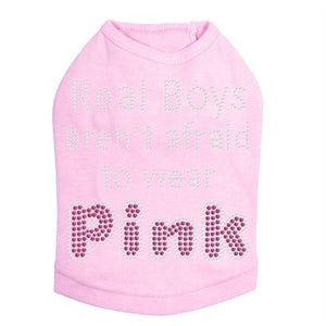 Real Boys Aren't Afraid to Wear Pink rhinestone dog tank for large and small dogs.