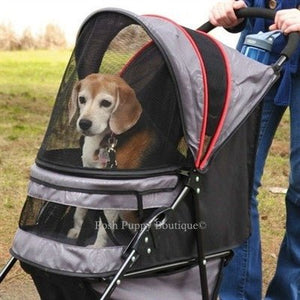 The perfect combination of mobility and style, the Regal stroller offers the luxury of three wheels (traditionally reserved for larger, more expensive models) in an affordable, convenient stroller. The Regal stroller will hold a dog or cat up to 25 pounds and has numerous little touches for extra convenience. The front convertible wheel swivels on smooth surfaces or locks on rough surfaces for easy traveling, while the extra storage pouches are perfect for your water bottle and other accessories Dont forget to get your Smart-Comfort pad, made with our simulated soft angora that is amazingly soft to the touch and easy to clean. Your pet will love the cozy softness. Model G2022SA (22 x 11 ) is a perfect fit. Smart-Features: