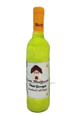 NEW & IMPROVED Santa Muttgarita Pino Grrrigio Sophisticated pups, rejoice! Our Santa Muttgarita Pino Grrrigio is back with a fresh new label and even more charm. This fan-favorite parody of a classic wine now features crackle and squeak for extra playtime appeal, all wrapped in soft, 100% plush polyester. All Haute Diggity Dog toys now feature a durable mesh lining for extra durability! Perfect for the pup who appreciates the finer things in life—no corkscrew required.