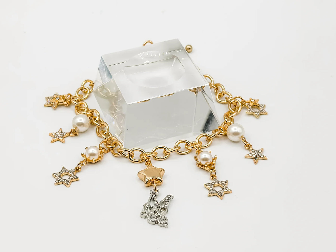 • Gold-tone chain with adjustable clasp• Crystal-encrusted star charms• Elegant pearl accents for added sophistication• Lightweight and comfortable for all-day wear