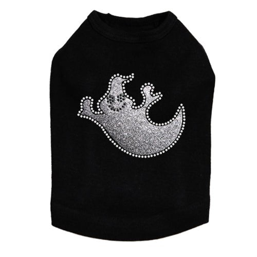 5.5" X 4.5" design with silver glitter, clear , black rhinestones.