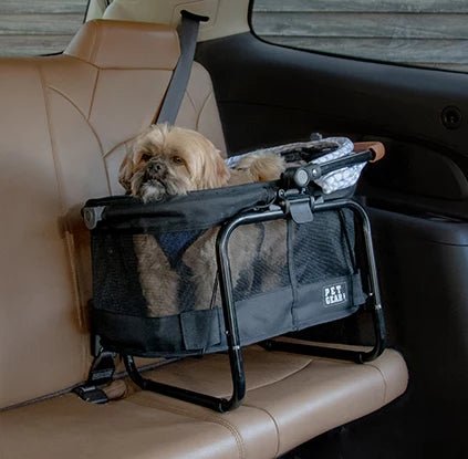 The VIEW 360 pet carrier is the easiest way to transport your pet in comfort and style. It easily converts into a car seat by attaching to your vehicle’s seat belt in seconds, no tools required. A push button entry is located on each side of the carrier giving you easy access to your pet without fumbling with difficult zippers. The carrier features mesh ventilation all the way around so your pet won’t miss any views while you travel. A removable, washable pad and interior tether are included to keep your pet comfortable and secure. The carrier is lightweight and has a padded carry handle to make traveling with your pet a breeze.