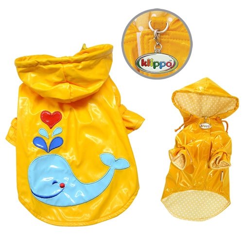 This raincoat is absolutely adorable! I have yet to let my fur baby wear it, but I had purchased a stuffed whale animal that perfectly matches the one on this raincoat! The stuffed blue whale toy is definitely her favorite, we named it "Jonah", and she knows it by that name and will go get "Jonah" whenever we tell her to and she carries him around proudly throughout the day! I'm going to love putting this coat on her to wear outside when it's wet! My pup hates going out in the rain, so this will be great for her. It's well made and has a light lining inside that'll help keep her warm, as well as dry. Love it!!!